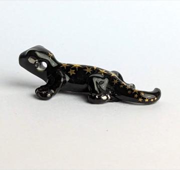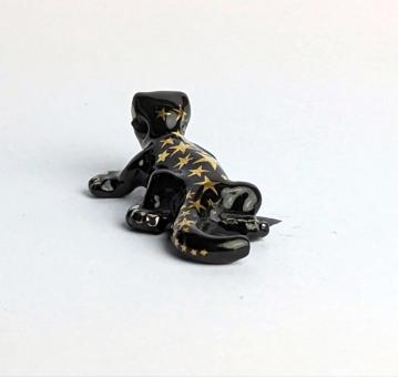 Sie suchen etwas wirklich Außergewöhnliches für Ihre Sammlung? Dann haben wir genau das Richtige für Sie! Unsere kunstvoll handbemalte Keramikfigur in der Form eines schwarzen Gekkos mit goldenen Sternen auf dem Rücken wird Ihr Zuhause aufpeppen und für Aufregung sorgen.