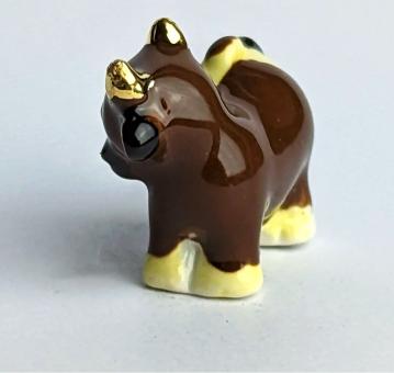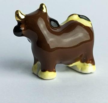 Sind Sie bereit für die lauteste Kuh in Ihrer Sammlung? Dann ist unsere handbemalte, goldene Keramikkuh mit geöffnetem Maul genau das Richtige für Sie! Mit einer Größe von nur 2 cm und in den Farben braun und dunkelbraun, ist sie der ultimative Hingucker in jedem Raum.
