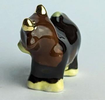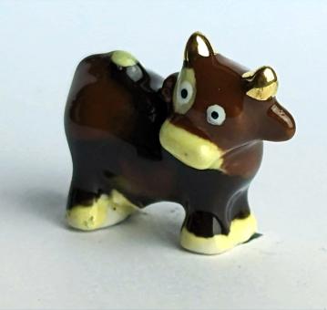 Sie suchen nach etwas wirklich Besonderem für Ihre Sammlung? Dann ist unsere handbemalte, goldene Keramikkuh mit verrücktem Blick genau das Richtige für Sie! Mit einer Größe von nur 2 cm und in den Farben braun und dunkelbraun, ist sie der ultimative Hingucker in jedem Raum.
