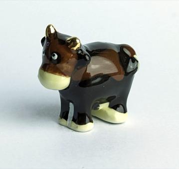 Sie suchen nach etwas wirklich Einzigartigem für Ihre Sammlung? Dann ist unsere handbemalte, goldene Keramikkuh mit ihrem unschuldigen Gesichtsausdruck genau das Richtige für Sie! Mit einer Größe von nur 2 cm und in den Farben braun und dunkelbraun, ist sie der ultimative Hingucker in jedem Raum.