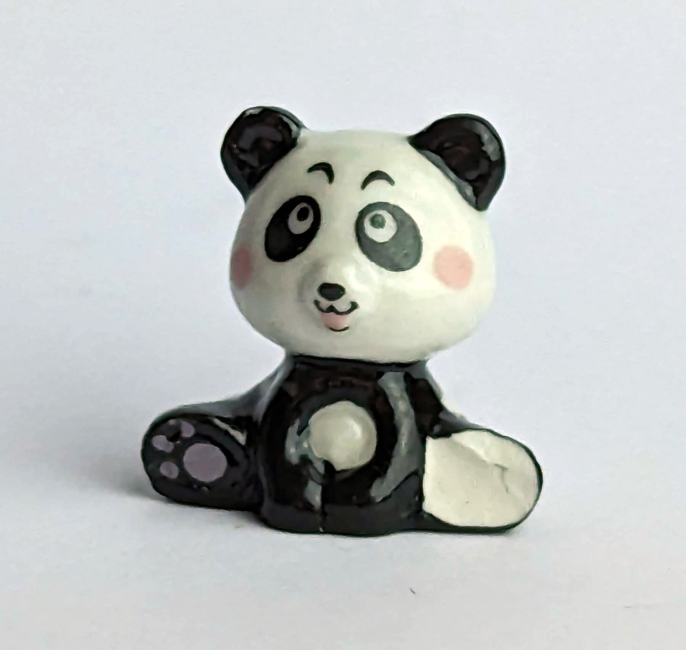 Diese niedliche Keramikfigur in Form eines Panda ist ein echter Hingucker in jeder Sammlung. Der kleine Panda ist liebevoll von Hand bemalt und zeigt sich in einer schwarz-weißen Farbgebung mit rosa Wangen. Mit einer Größe von nur 2 cm ist die Figur besonders dekorativ und kann überall platziert werden.